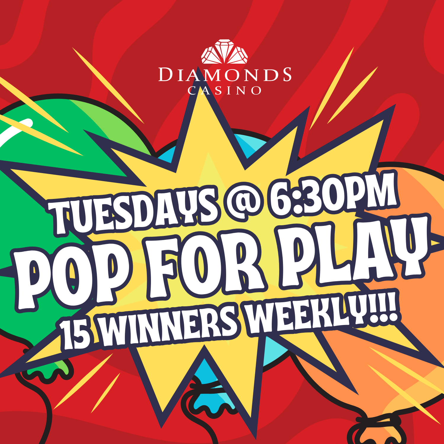 For some mid-week excitement starting at 6:30 on Tuesday, join us for Pop for Play. Drop your tickets into the drum and participate in the excitement of winning Free Play, for each 100 points you get one ticket. The more you play the better chances you have to win.